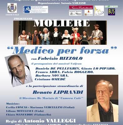 In un immaginario foyer all’aperto si ritrovano, alle 20.30, gli spettatori, per essere guidati in un vero e proprio percorso nei giardini del Castello di Agliè, tra labirinti di siepi, giochi di luce, esibizioni di scherma e di arte circense, vocalizzi e antiche arie, fino a raggiungere il cortile della scuderia dove andrà in scena, con la sola illuminazione delle fiaccole e della luna, “Medico per forza” di Molière, seguito da una degustazione enogastronomica.