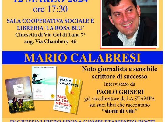 Il noto giornalista e sensibile scrittore di successo, sarà intervistato da